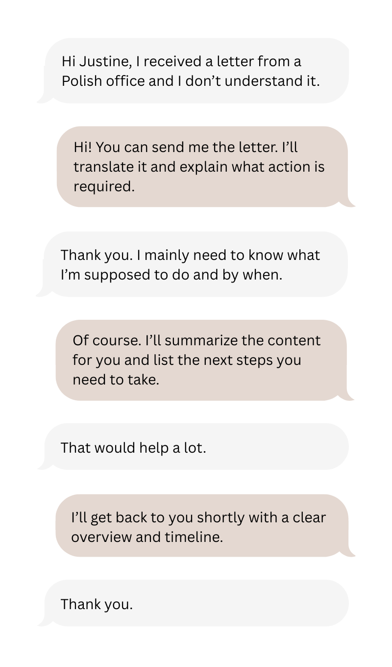 I help individuals and businesses feel supported in Poland by offering clear communication, local presence, and thoughtful handling of each situation without unnecessary complexity.